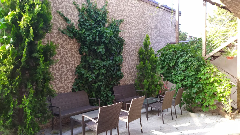 Ухоженный двор с зоной отдыха на несколько апартаментов. Бесперебойная подача холодной и горячей воды. Предоставляется постельное бельё, полотенца.Уборка!!!