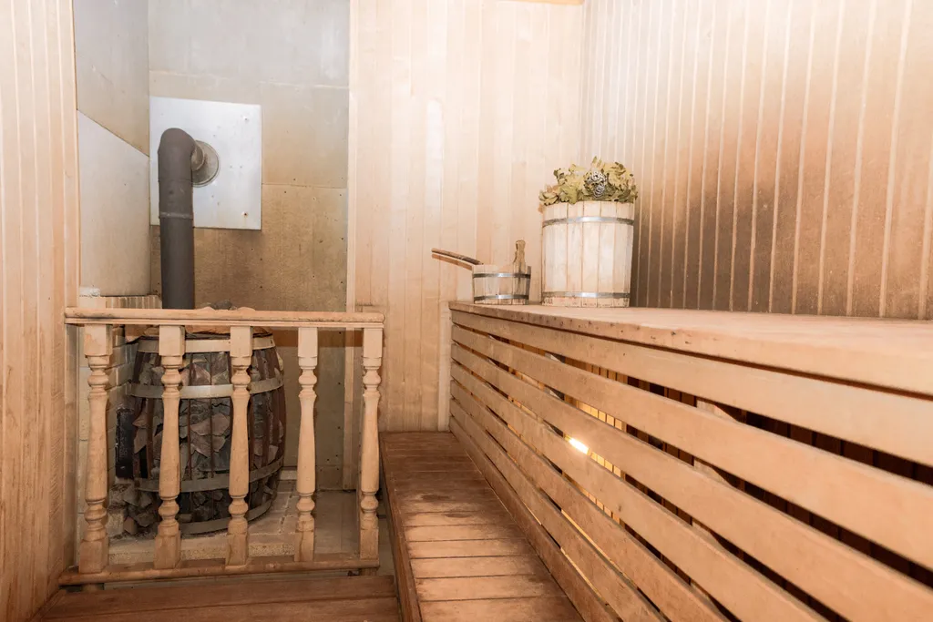 Просторный дом с высокими потолками, банный комплекс, печь на дровах с купелью.