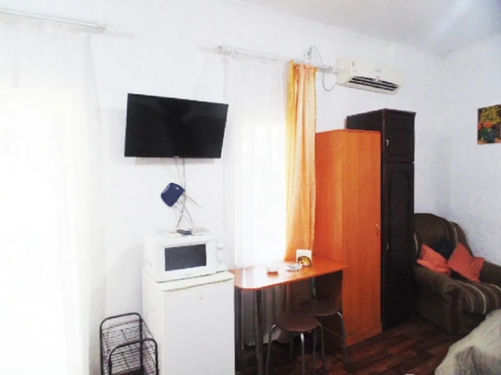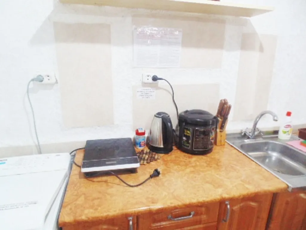 Студия оборудована всем необходимым: кондиционер, отопление, горячая вода, Wi-Fi, ТВ, стиральная машина, фен, утюг и гладильная доска. На кухне есть всё для готовки: холодильник, плита, чайник, микроволновка, мультиварка, посуда и кухонные принадлежности.