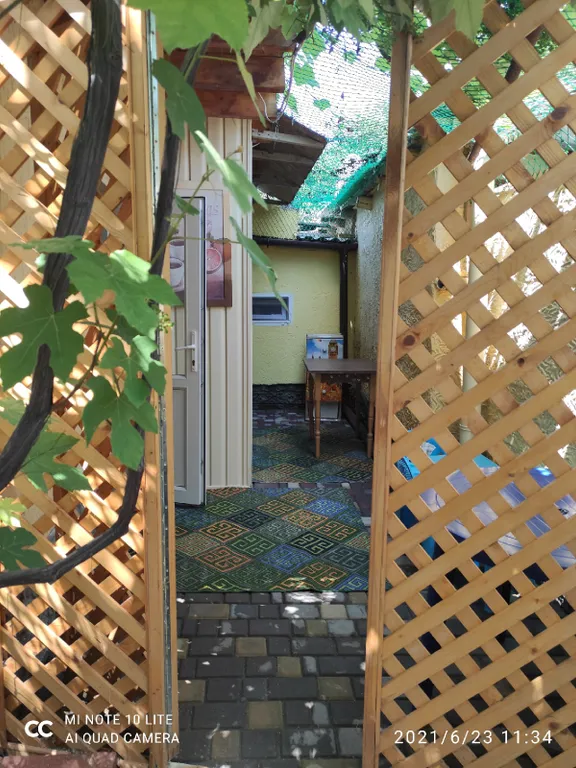 Двухэтажный дом с собственным огороженным двориком под ключ. На первом этаже расположена жилая комната, туалет и душ, примыкает летняя кухня. На втором этаже - жилая комната, балкон, туалет и умывальник. Оборудована зона для отдыха под тентом, в тени винограда, в распоряжении мангал. Есть кондиционер (наверху и внизу) и WI-FI, всегда есть холодная и горячая вода. У нас спокойно, безопасно детям, уютно и комфортно. Ждём Вас!
