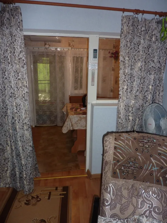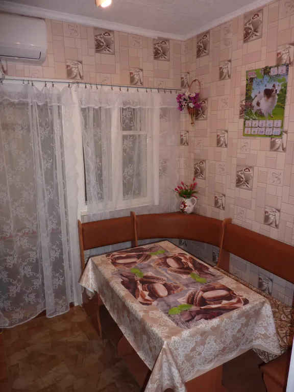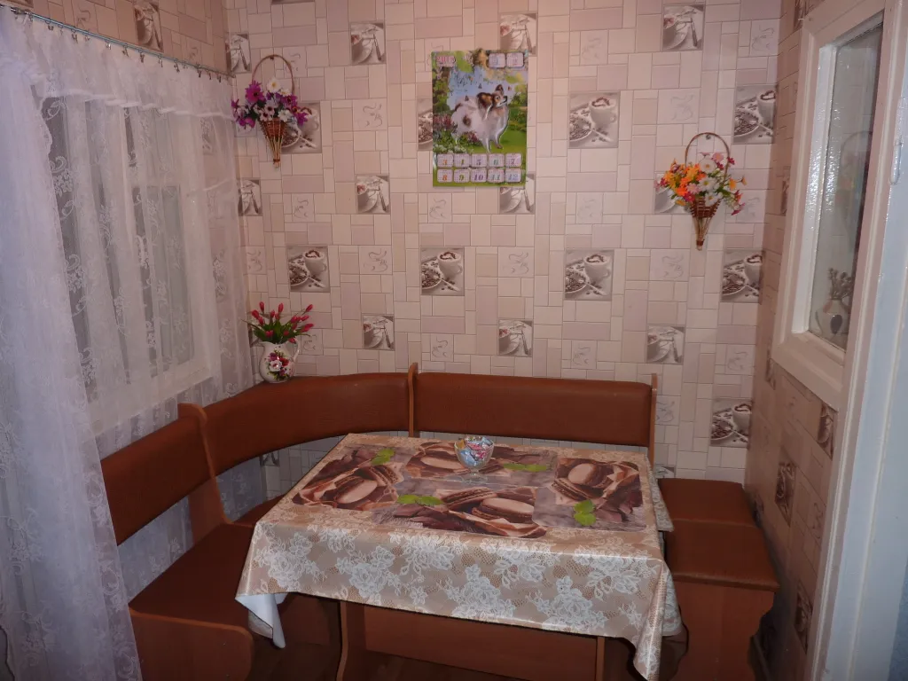 Мягкий уголок, обеденный стол, шкаф, табуретки.